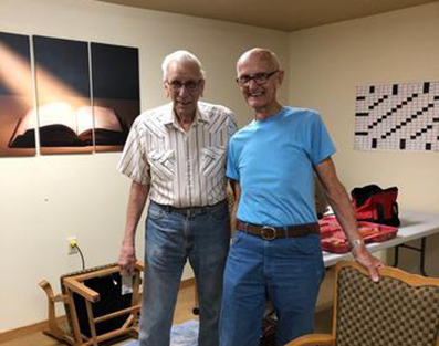 Earl Walker (left) inspired Dick Sievers (right) to build his first dollhouse. Sievers said he used to build “real” houses through his business, Sievers Custom Builders in Minooka, which his son Douglas now owns.